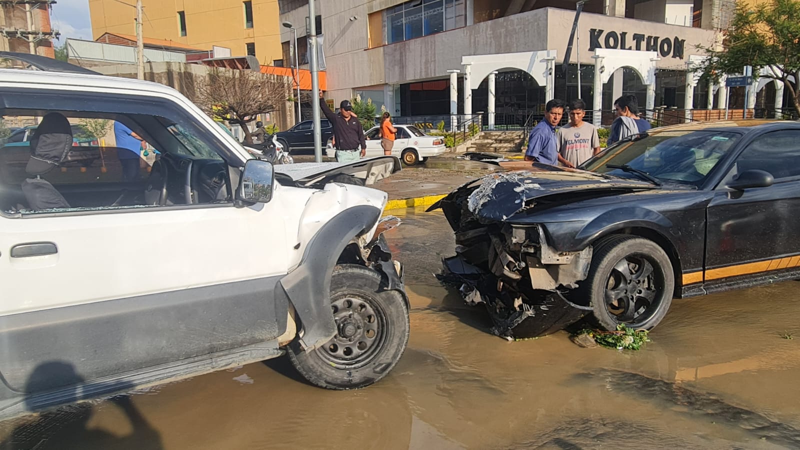 Se registra choque frontal de dos vehículos en Av. Integración ver detalles...